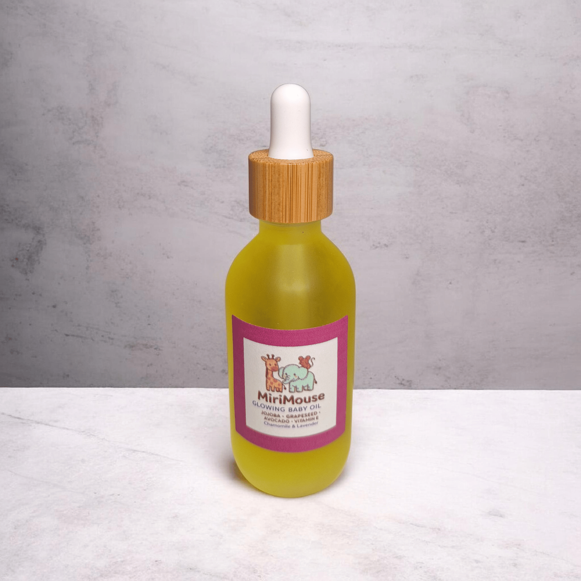 MiriMouse Baby Glowing Oil is a lightweight, silky oil made to keep baby’s skin moisturized, smooth, and naturally glowing. Perfect for after-bath massages or daily moisture, this gentle blend helps seal in hydration while chamomile and lavender bring a calming touch to baby’s routine.